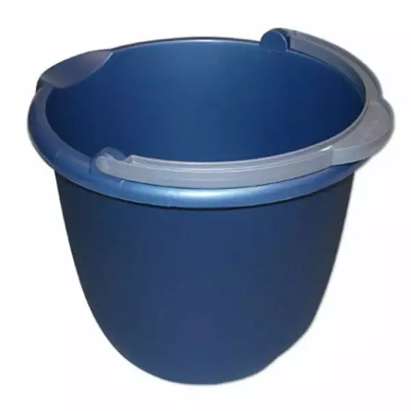 14″ round bucket is perfect for corner use. Molded plastic with carry handle.