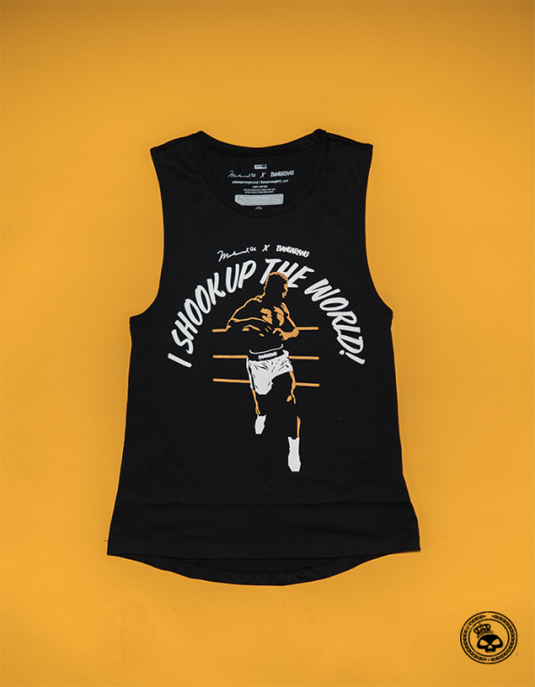 Officially Licensed Bangarang x Ali “Shook Up The World” Women’s Tank Top Sideseamed. Relaxed, drapey fit. Low cut armhole. Super soft. Curved bottom hem. 40% poly/30% cotton/30%