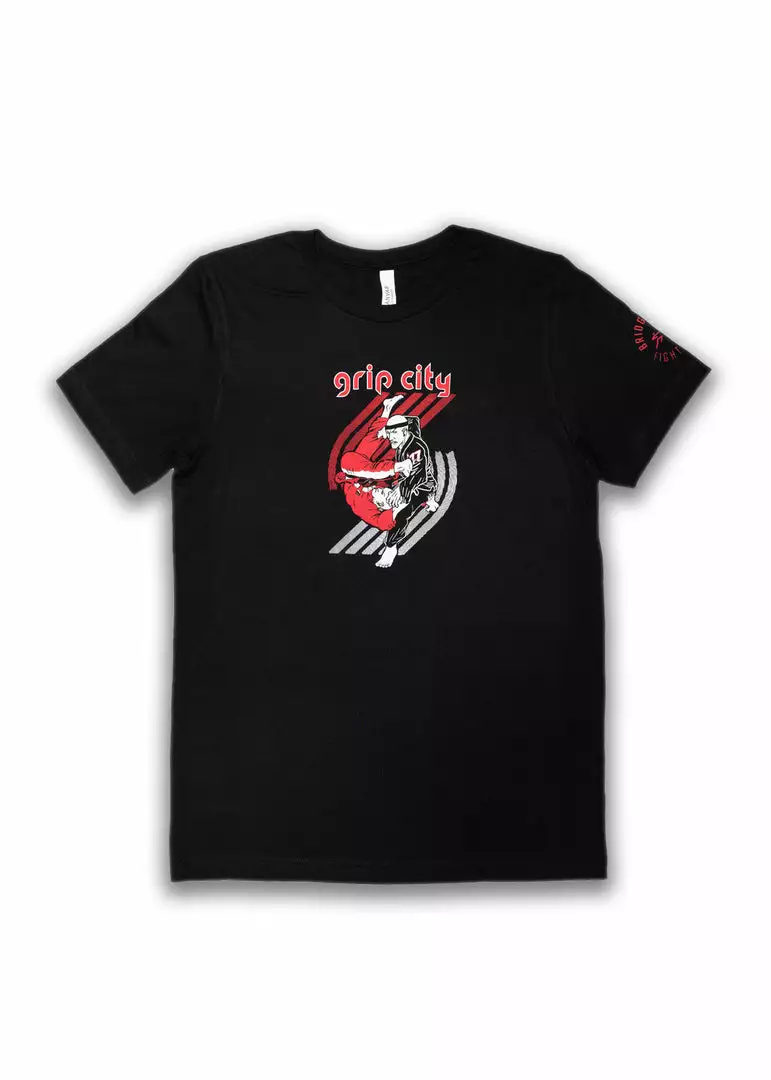 Rip City Inspired! This tee was designed by local artist, kickboxing guru and pizza aficionado Andrew Wright,. This design holds a special place in our hearts, not only as Portland Basketball fans, but because it took us almost a year of going thru different designers to find the right design that matched our vision. We hope you enjoy it as much as we do!