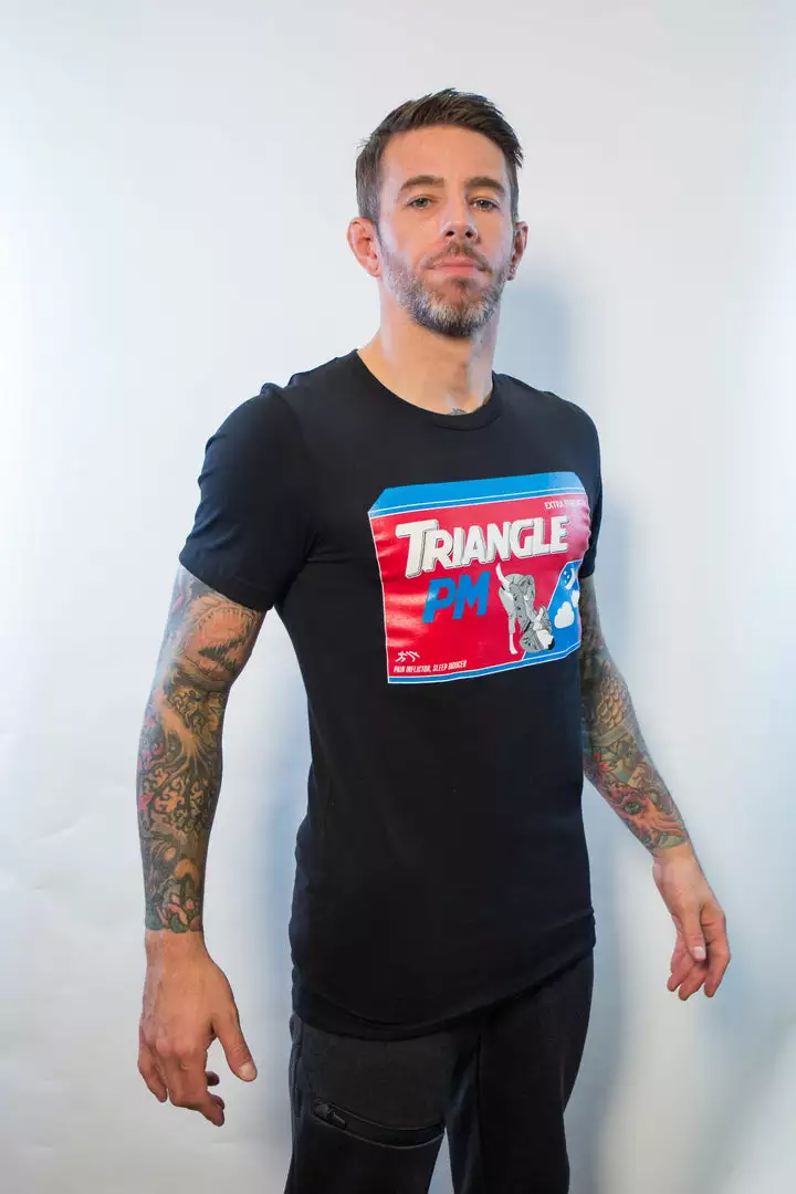 Can’t sleep? Try Triangle PM! The brainchild from local black belt, amateur woodworker and the most knowledgeable BJJ rule referee this side of the canal KC Thompson, this tee is exactly what the doctor ordered!