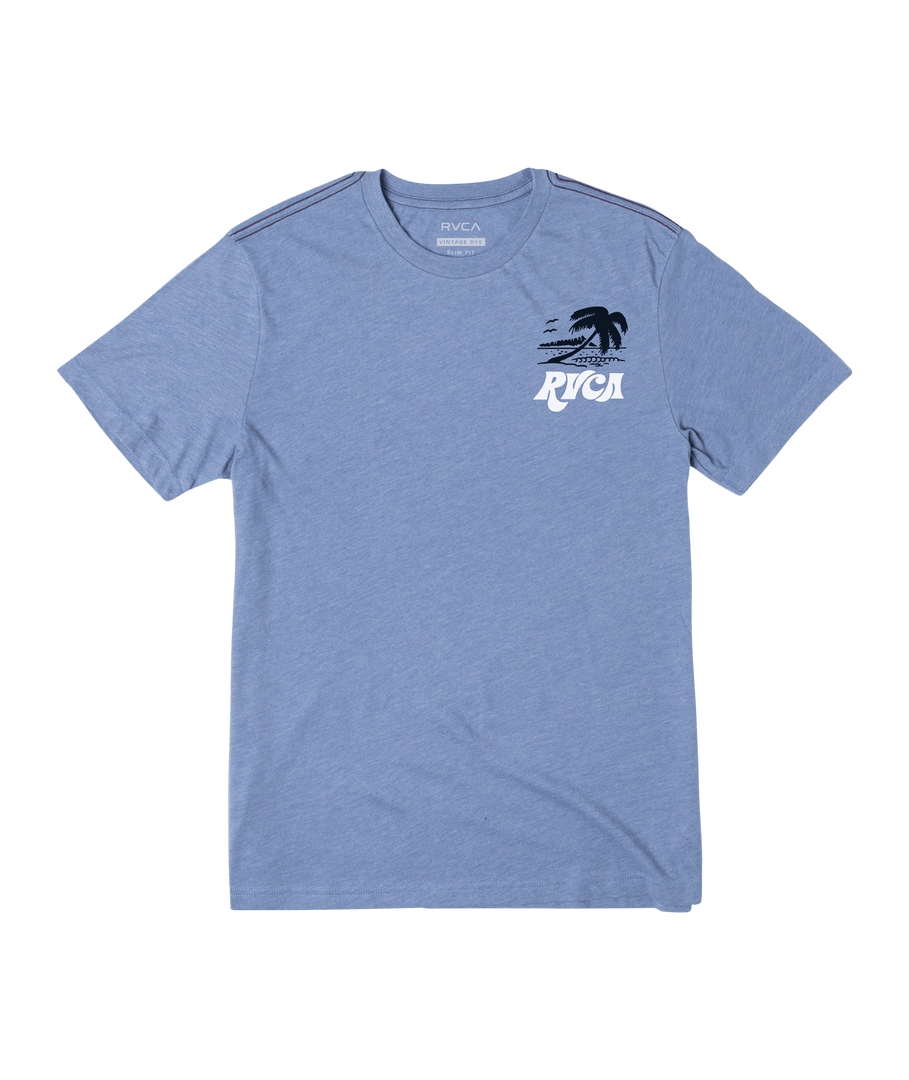 The Hawaii RVCA vacation short sleeve t-shirt features screen prints at the front and back for a standout look, made from lightweight, vintage dyed, cotton-poly fabric, this men’s short sleeve t-shirt is topped with a crew neck and our signature red stitch.