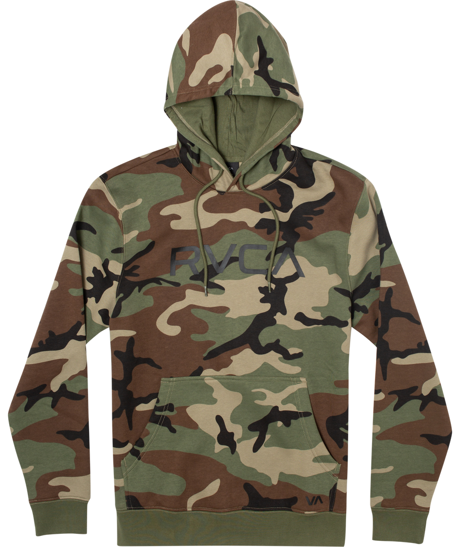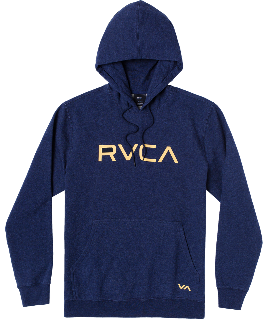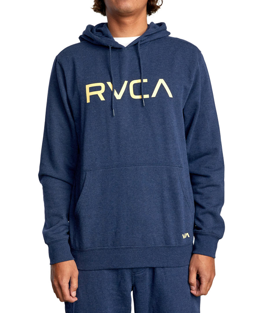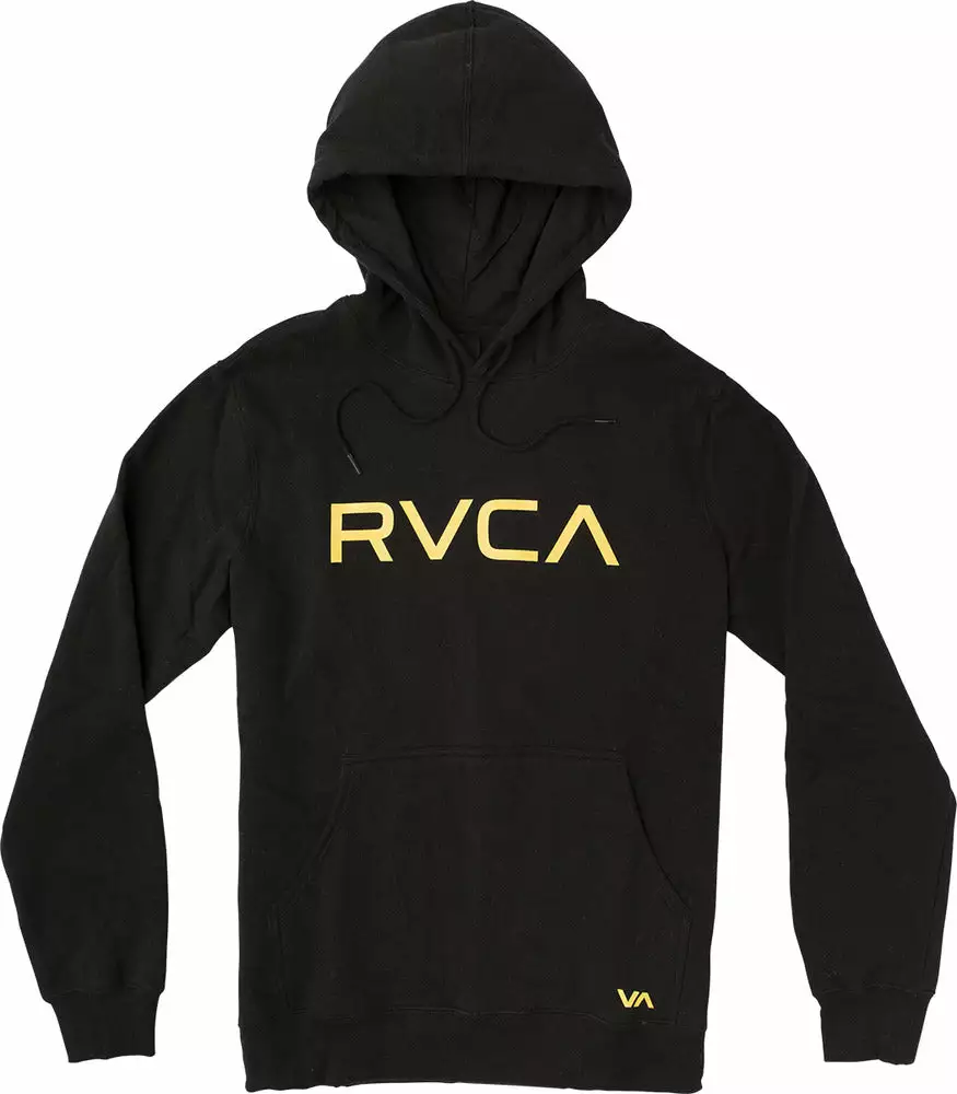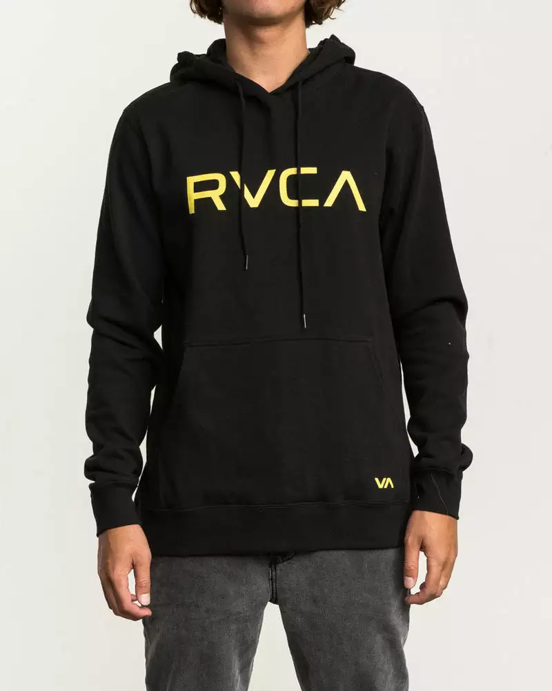The Big RVCA Pullover Hoodie offers up a staple hooded fleece, backed by a signature RVCA logo print. An everyday essential, the mens sweatshirt holds down a classic with a hooded pullover cut, drawcords at the hood, a pouch pocket and rib knit at the cuffs and hem. The staple fleece is topped with a large RVCA print at the center chest and VA print at the pocket.