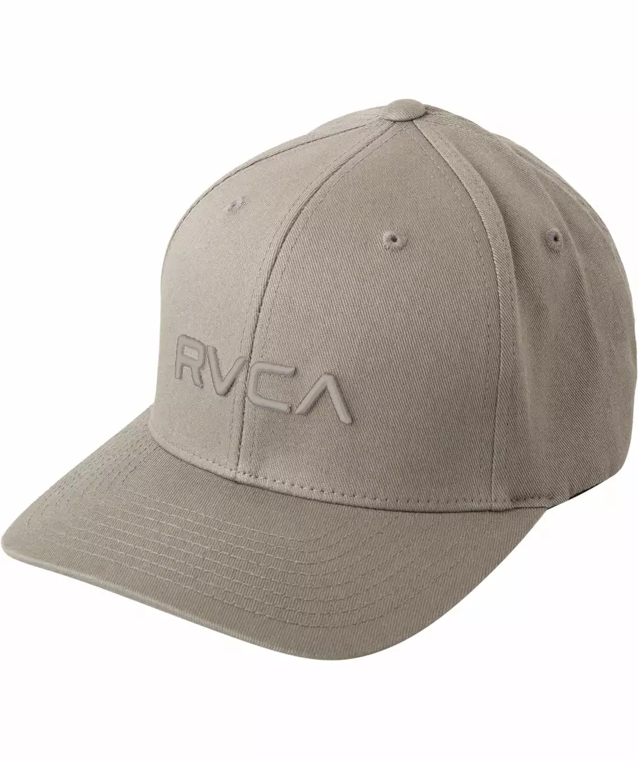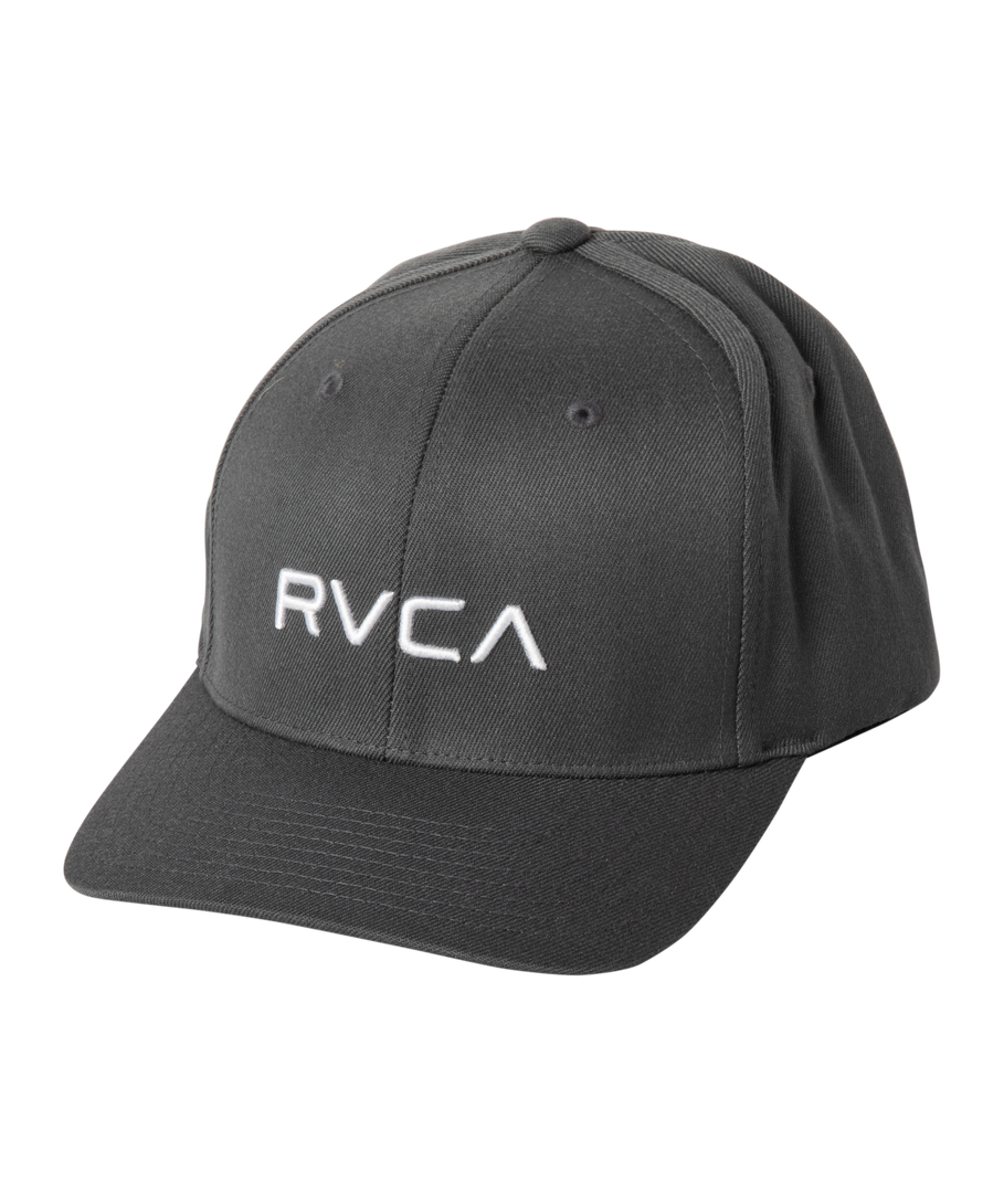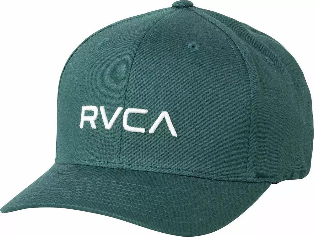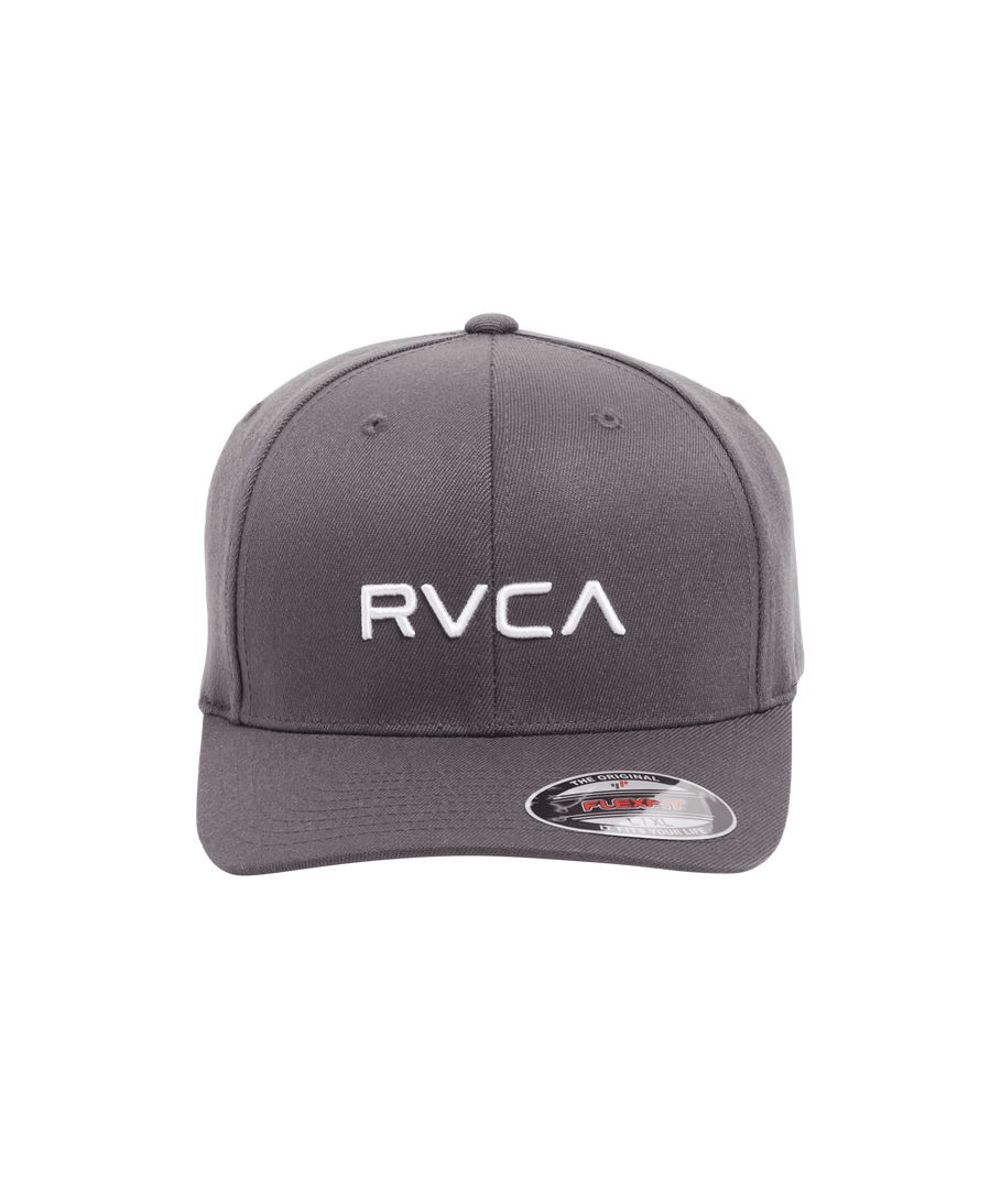 The RVCA Flex Fit is a mid fit, 6-panel darted flex fit hat with a curved visor, with RVCA raised embroidery at the front and VA embroidery at the rear.