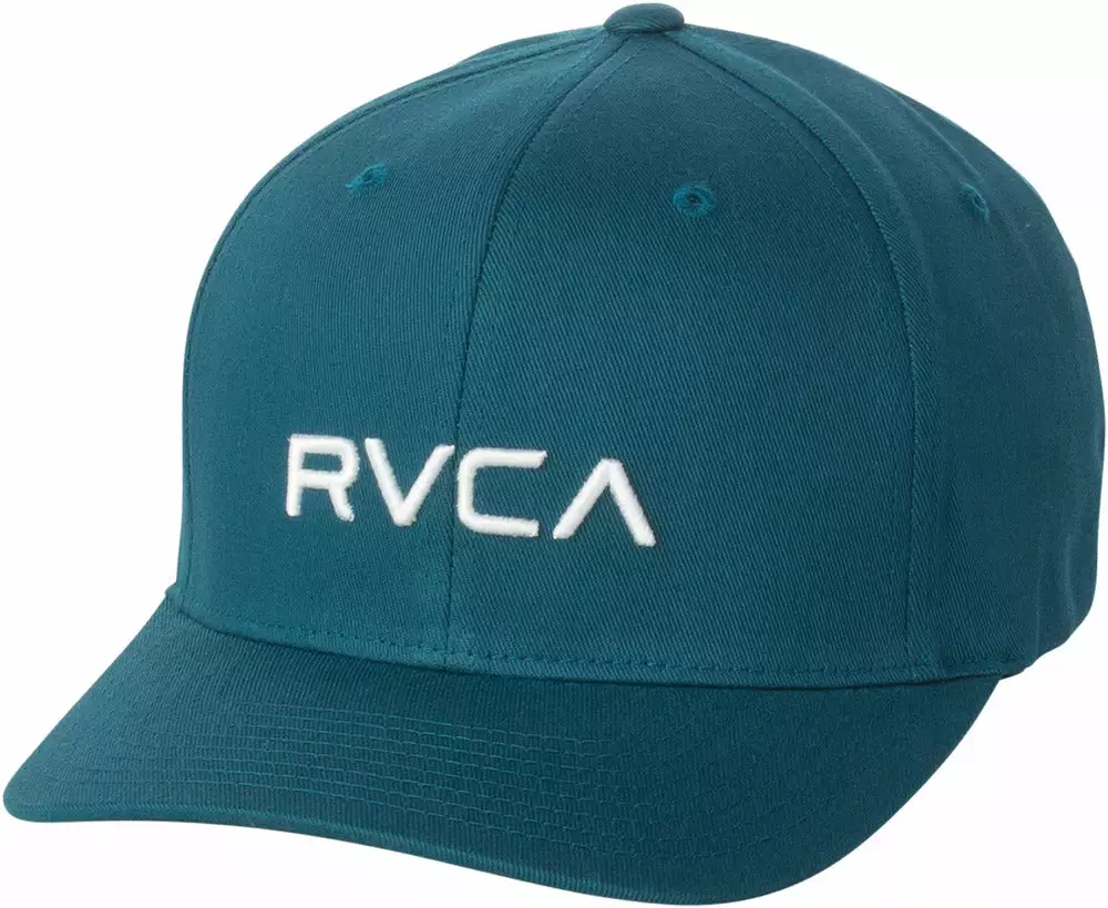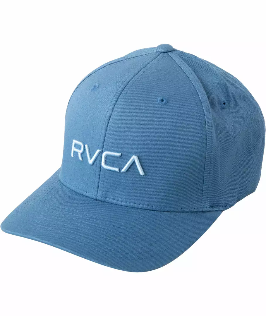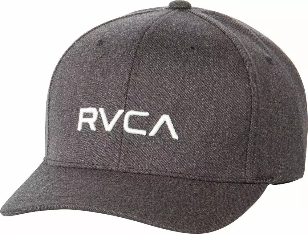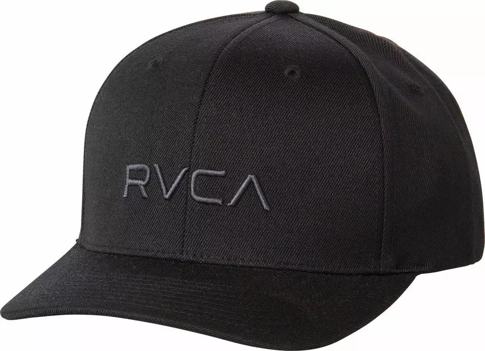 The RVCA Flex Fit is a mid fit, 6-panel darted flex fit hat with a curved visor, with RVCA raised embroidery at the front and VA embroidery at the rear.