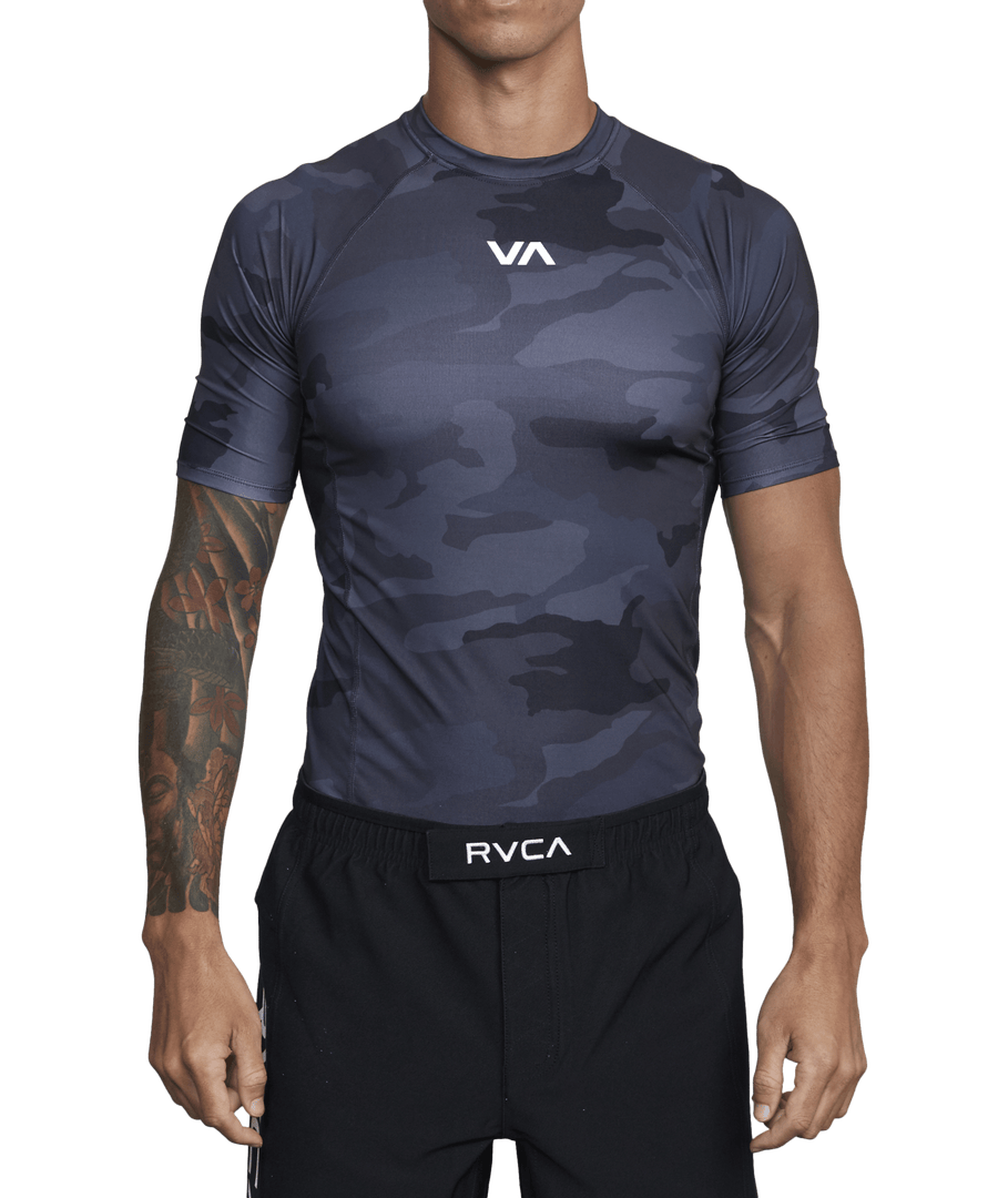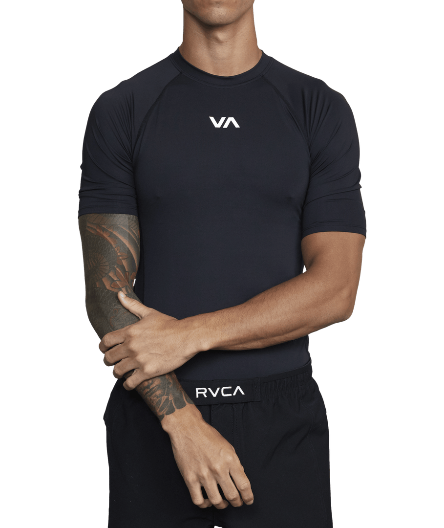 Expect a perfect fit and essential comfort in the sport short sleeve rashguard by RVCA. Stretch blend fabric and short raglan style sleeves make this a classic fitted workout shirt.