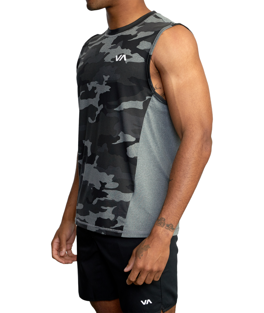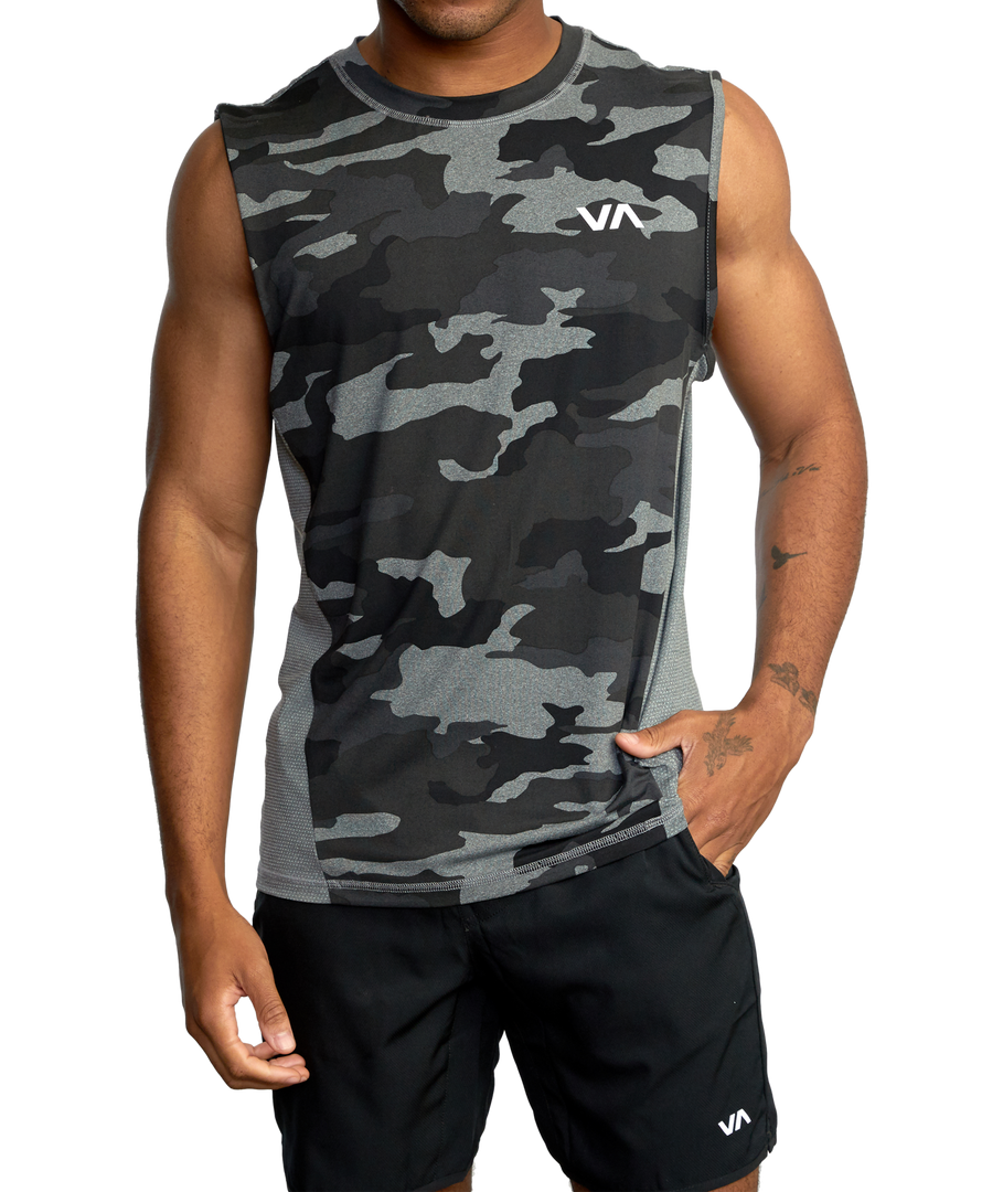 When it’s too hot for sleeves, the RVCA Sport Vent Muscle Tank Top has you covered. This poly stretch tank top features mesh gussets at the sides and back, a crew neckline and RVCA VA prints throughout.