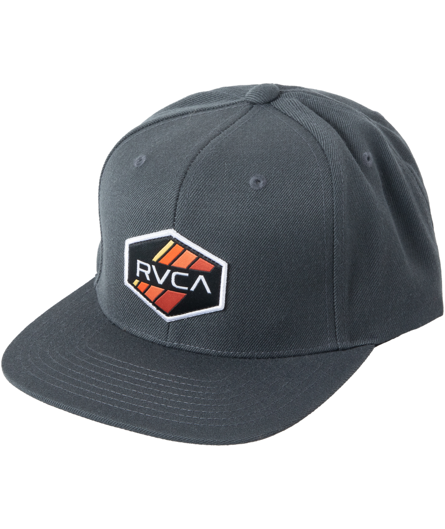 The RVCA Stripe Hex Snapback Hat features heritage design with modern twist. Made form soft acrylic wool, this men’s 6-panel snapback hat is built with a structured front and topped with a woven, merrowed edge RVCA patch for a bold look throughout.