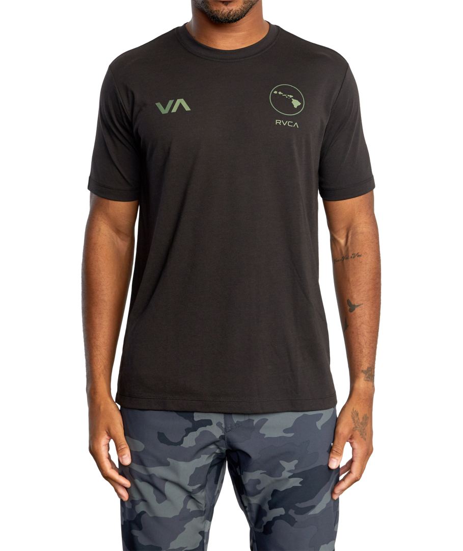 Infused with Aloha vibes for days, the RVCA VA Hawaii short sleeve tee keeps you comfortable in style. Made for soft poly cotton jersey with DRIRELEASE® for better breathability, this lightweight t-shirt features a crew neckline, short sleeves, custom Hawaii graphics throughout and screened inside neck.
