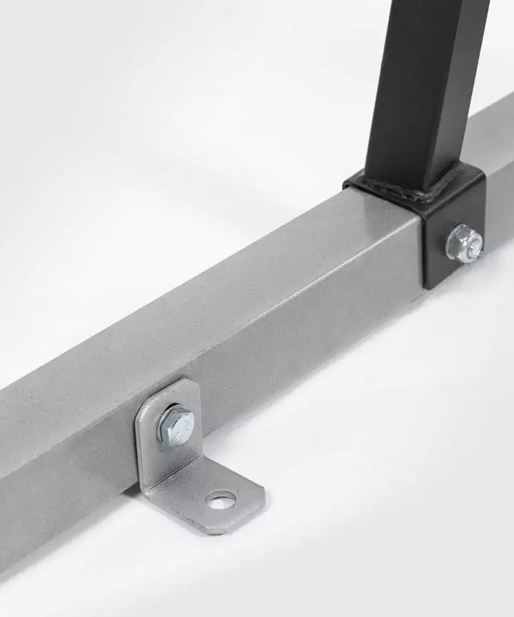 This metal bracket is stabilized on the ground by weights which should be located on the sides and at the rear of the bracket. These weights are not provided. If possible, you are also able to fix the stem to the ground (screws not supplied).